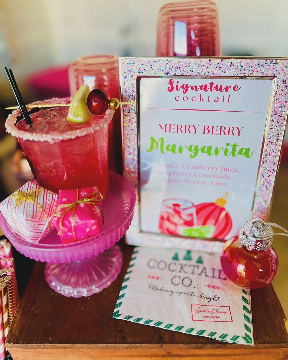𝘈𝘭𝘵𝘩𝘰𝘶𝘨𝘩 𝘵𝘩𝘦 𝘴𝘶𝘯 𝘸𝘢𝘴 𝘰𝘶𝘵, 𝘵𝘩𝘦 𝘸𝘪𝘯𝘵𝘦𝘳 𝘤𝘩𝘪𝘭𝘭 𝘸𝘢𝘴 𝘪𝘯 𝘵𝘩𝘦 𝘢𝘪𝘳. 𝘎𝘶𝘦𝘴𝘵𝘴 𝘦𝘯𝘫𝘰𝘺𝘦𝘥 𝘴𝘵𝘢𝘺𝘪𝘯𝘨 𝘢 𝘭𝘪𝘵𝘵𝘭𝘦 𝘵𝘪𝘱𝘴𝘺 𝘢𝘯𝘥 𝘵𝘰𝘢𝘴𝘵𝘺, 𝘵𝘩𝘢𝘯𝘬𝘴 𝘵𝘰 𝘰𝘶𝘳 𝘴𝘪𝘨𝘯𝘢𝘵𝘶𝘳𝘦 𝘥𝘳𝘪𝘯𝘬, 𝘵𝘩𝘦 𝙈𝙚𝙧𝙧𝙮 𝘽𝙚𝙧𝙧𝙮 𝙈𝙖𝙧𝙜𝙖𝙧𝙞𝙩𝙖—𝘢 𝘧𝘦𝘴𝘵𝘪𝘷𝘦 𝘤𝘰𝘤𝘬𝘵𝘢𝘪𝘭 𝘵𝘩𝘢𝘵 𝘱𝘦𝘳𝘧𝘦𝘤𝘵𝘭𝘺 𝘣𝘭𝘦𝘯𝘥𝘦𝘥 𝘳𝘦𝘧𝘳𝘦𝘴𝘩𝘪𝘯𝘨 𝘧𝘳𝘶𝘪𝘵 𝘧𝘭𝘢𝘷𝘰𝘳𝘴 𝘸𝘪𝘵𝘩 𝘢 𝘩𝘪𝘯𝘵 𝘰𝘧 𝘩𝘰𝘭𝘪𝘥𝘢𝘺 𝘤𝘩𝘦𝘦𝘳. 𝘛𝘩𝘦 𝘮𝘢𝘳𝘨𝘢𝘳𝘪𝘵𝘢 𝘮𝘪𝘹 𝘸𝘢𝘴 𝘱𝘭𝘢𝘤𝘦𝘥 𝘪𝘯𝘵𝘰 𝘢 𝘊𝘩𝘳𝘪𝘴𝘵𝘮𝘢𝘴 𝘰𝘳𝘯𝘢𝘮𝘦𝘯𝘵 𝘵𝘰 𝘤𝘳𝘦𝘢𝘵𝘦 𝘢 𝘧𝘶𝘯 𝘢𝘯𝘥 𝘧𝘦𝘴𝘵𝘪𝘷𝘦 𝘴𝘶𝘳𝘱𝘳𝘪𝘴𝘦, 𝘢𝘯𝘥 𝘸𝘦 𝘩𝘢𝘥 𝘚𝘱𝘳𝘪𝘵𝘻𝘺 𝘊𝘩𝘳𝘪𝘴𝘵𝘮𝘢𝘴 𝘥𝘦𝘤𝘰𝘳𝘢𝘵𝘪𝘰𝘯𝘴 𝘨𝘢𝘭𝘰𝘳𝘦!